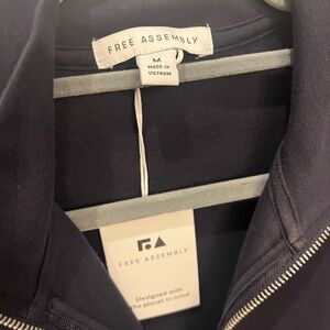 Elegant navy blue dress with a zip-up front. Perfect for any occasion.