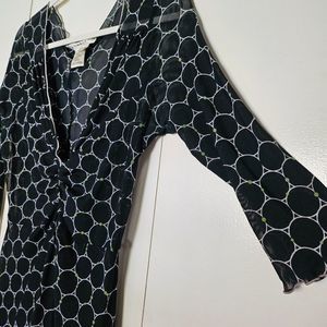 Navy Blue Mesh Nylon Pullover Dress With white and green design - size small
