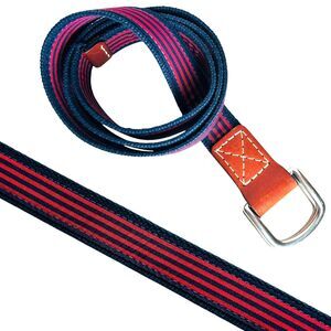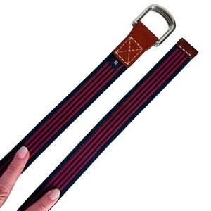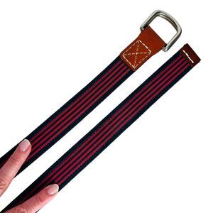 Navy Blue and Red Striped Belt Size L XL Brown Leather Ends Unisex Men Women