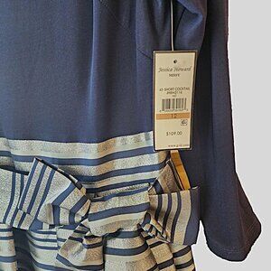 Navy Blue and Silver Cocktail Dress by Jessica Howard - Size 12 - NWT