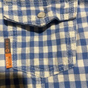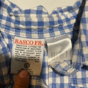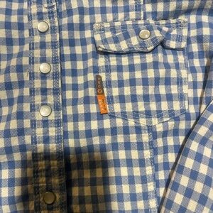 Navy Blue and White Button Down Shirt Lightweight Cotton FR Fire resistance L