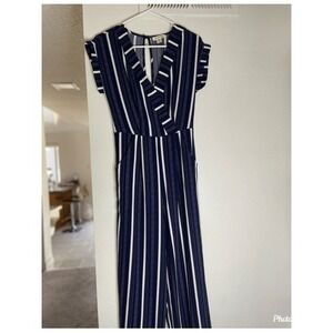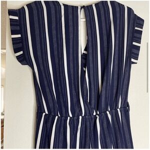 Navy Blue and White Short Sleeve Striped Jumper Jumpsuit Pants Romper XL Monteau