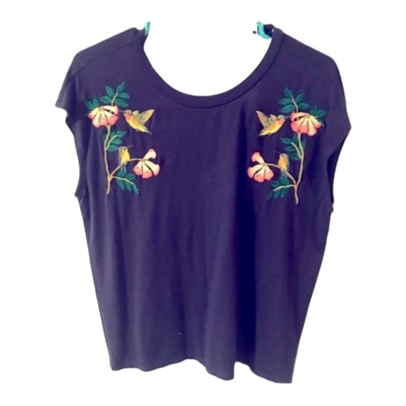Navy Blue hummingbird Crop Top w/ open back