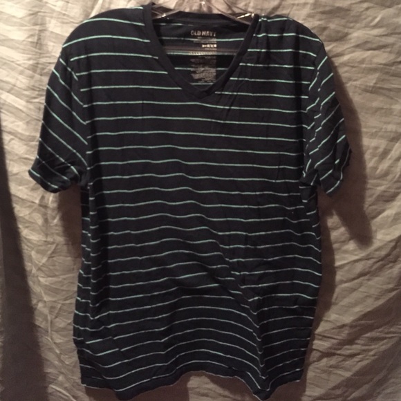 Navy blue v-neck with mint green stripes. No holes/stains/etc. Size M.