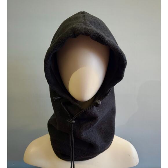 Blue/Black Fleece Hood w/Drawstring size OS (Unisex). Featuring a warm fleece fabric, drawstring hood, neck coverage and a drawstring neck opening.