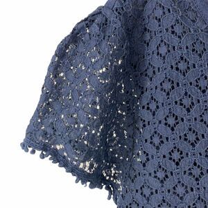 Navy Blue Lace Front Short Sleeve Maternity Top M