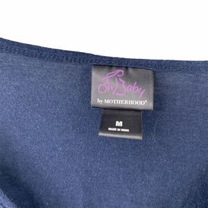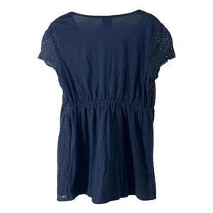 Navy Blue Lace Front Short Sleeve Maternity Top Size Medium Oh Baby! By Motherhood Brand Empire Waist With Elastic Back Panel / Drawstring V-Neck