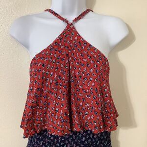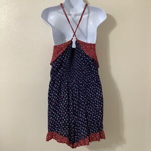 Navy Bohemian Prairie Western Hippie Coastal Cowgirl Ruffle Halter Romper XL