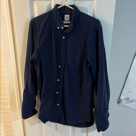 Stylish navy button-up shirt with a classic design. Perfect for any occasion.