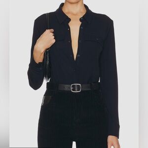 Stylish navy button-up shirt with long sleeves. Perfect for any occasion.