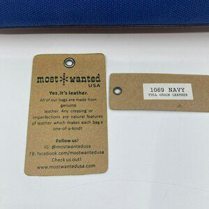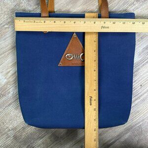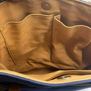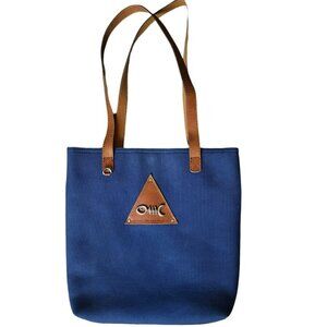 Navy Canvas Tote Bag Full Purse Grain Brown Leather Accents by Most Wanted USA