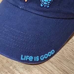 Navy baseball cap featuring embroidered turtles in blue, orange, and green.