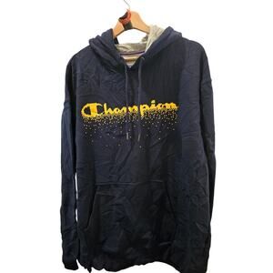 Keywords: Champion hoodie 2XL, men’s navy sweatshirt, pixelated logo hoodie, athletic pullover navy, comfy casual hoodie, Champion sweatshirt XXL, unisex hoodie 2XL, EUC Champion gear.