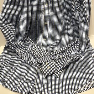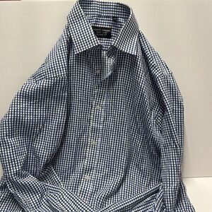 Pre-owned excellent quality. This is a great looking dress shirt. Upgrade your style with the navy checkered shirt. Ideal for casual outings, this shirt combines comfort with a modern look.
