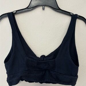 Stylish navy blue cropped tank top with a tie front. Perfect for casual wear. Vacation and or lounge top. Stretch. Super cute when going for the BOHO looks. Almond mom written all over this.