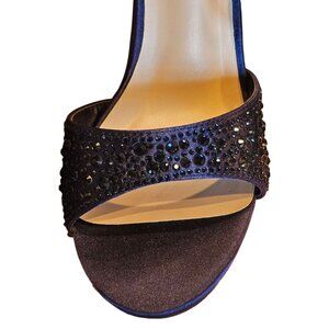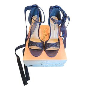 These stunning shoes are brand new in the box. Features crystals and an organza ankle ribbon tie for extra pizazz.