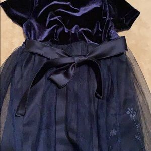 Perfect dress for Christmas or other special occasion! Size 5 and in great condition. Velvet bodice with polyester skirt with lacy overlay. Tie in back.
