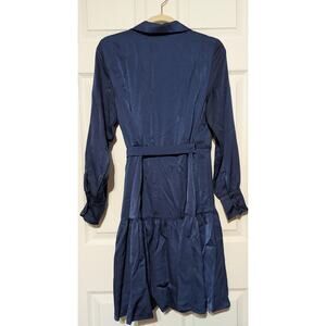 Navy Dress Womens Large Long Sleeve Wrap Belted Ruffle Satin Look Party Formal