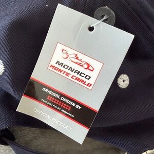 MONACO MONTECARLO navy baseball cap with embroidered racing logo. Branded styling adds authentic motorsport appeal. Lightweight, comfortable design for everyday wear. Navy color complements casual and sporty outfits. BRAND NEW