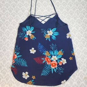 Navy Floral Express Criss Cross Front Strappy Tank Top Size XS