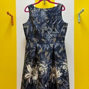 Navy Floral Formal Fit & Flare Sleeveless with deep v in the back Size 14