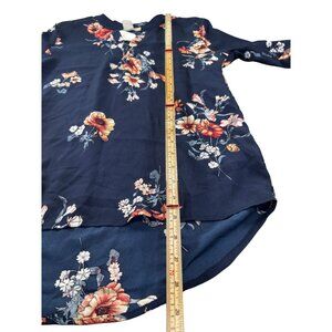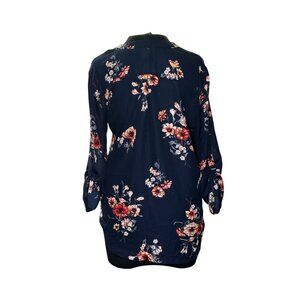 Navy Floral Long Sleeve Blouse Womens Size L