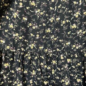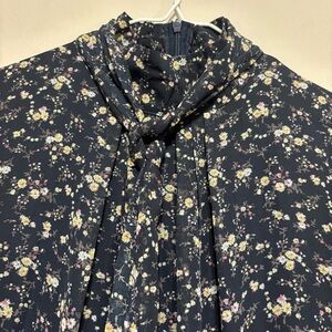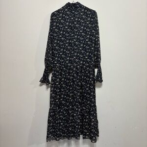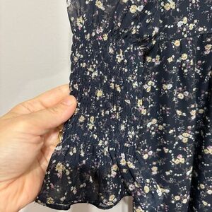 Chic navy dress with a charming floral design. Ideal for versatile styling. it has a very small hole the back next to the zipper in the last picture