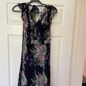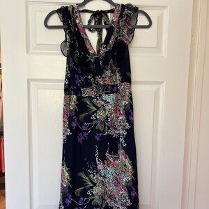 DEPT Navy Floral Ruffle Dress w/ Tie Back