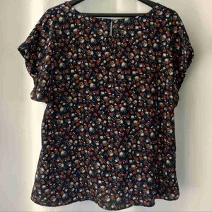 Elegant navy blouse with a vibrant floral pattern. Ideal for adding a touch of style to your everyday look.