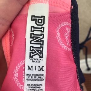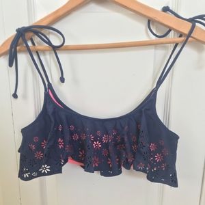 Navy flounce bikini top with flower detail and pink underlay. Worn once. Great coverage.