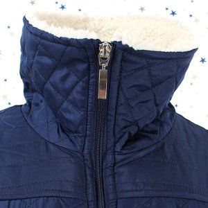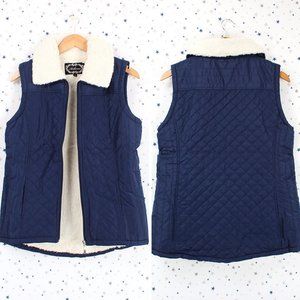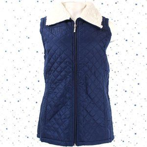 Navy Fur lined Sherpa Quilted Zip Up Vest