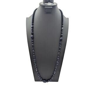Navy Glass Multi-Shape Bead 36" Single Strand Necklace W/ Lobster Clasp. Pre-owned, this necklace is in excellent condition.