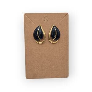 Navy & Gold Teardrop Vintage Earrings – Enamel Studs – Classic 80s/90s Style