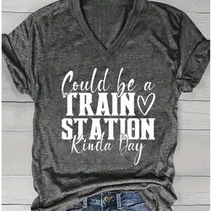 I have 1 Navy and 1 gray tee with bold white graphic text. Perfect for casual wear.