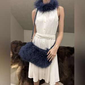 Navy Handmade Real Curly Shearling Removable Strap Bag/Shoulder Bag/Crossbody