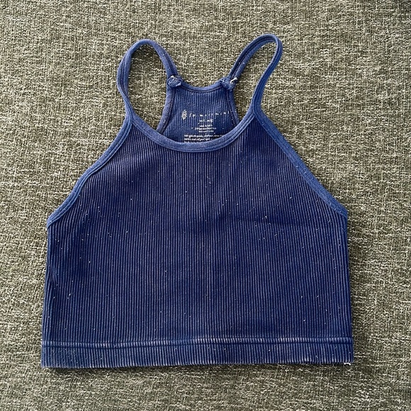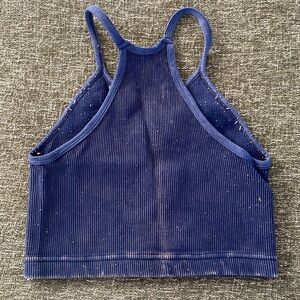 Navy High Neck Ribbed Workout Bra/Top