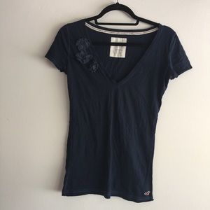Navy Hollister V Neck T-Shirt - Size small with flower embellishments. Great condition.