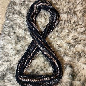 Navy infinity fashion scarf, rayon/nylon/poly.