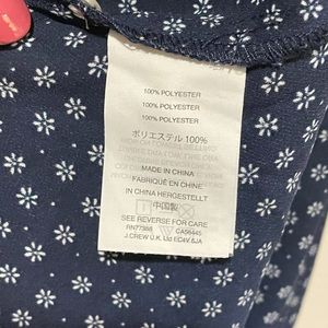 Navy and white printed shell. Button closure. Minor wear. 100% polyester. Machine washable.