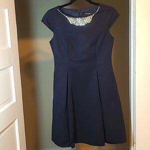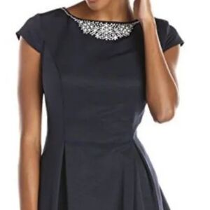 Navy Jewel Neck Cap Sleeve A-line Cocktail Dress Womens Petite Small (4-6)