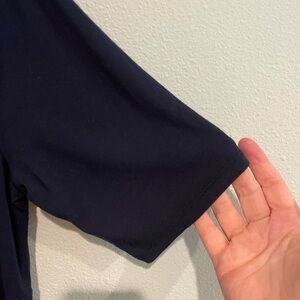 Navy Jones New York Signature Jersey Knit Dress. V neck with Empire waistline. Super comfortable but classy at the same time. Closet staple. Midi Length