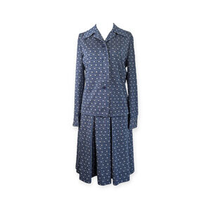 Navy KIMBERLY 60's Skirt Set Geometric Dacron Wide Pleat XS/S