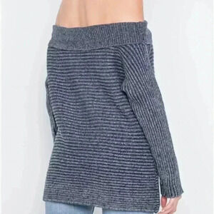 Sweater features: long sleeves, ribbed, fold over off-the-shoulder neckline, loose fit,
