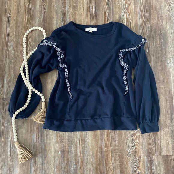 Navy LOFT Ruffle Sweatshirt