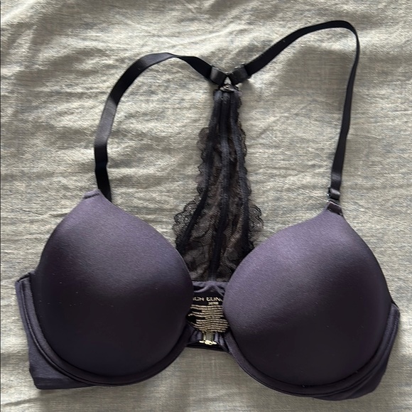 Elegant navy bra with lace racerback design. Perfect for a stylish and comfortable fit.