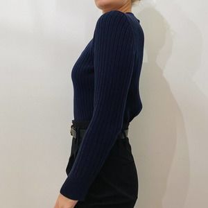 Navy Lauren Jeans Company Fitted Ribbed V Neck Sweater