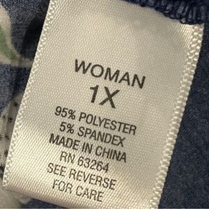 Navy Leaf Print Long sleeve plus size stretchy dress size 1XL