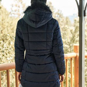 Navy Long Vegan Fur Hood Winter puffer Jacket Dark