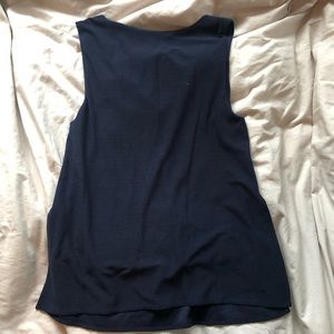 Navy Mango sleeveless flowy blouse in size US XS. Has additional built in lining underneath. Used, but still in good condition! Minor pulling and thread pulls as shown.
