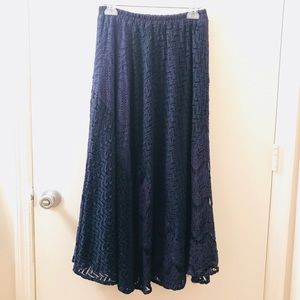 Navy blue maxi skirt by Reba. Size small. Lined. Crochet detail. Elastic waist. Still in great condition, just downsizing my closet. Make me an offer ππΌππΌππΌ